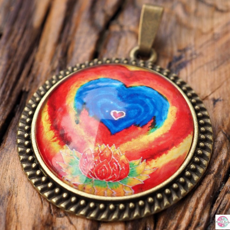 Medalion z mandalą "Przebudzenie Serca". Mandala ta wspiera przebudzenie serca do miłości, odmrożenie go i przekształcenie dzięki procesowi doświadczania siły przeciwieństw.