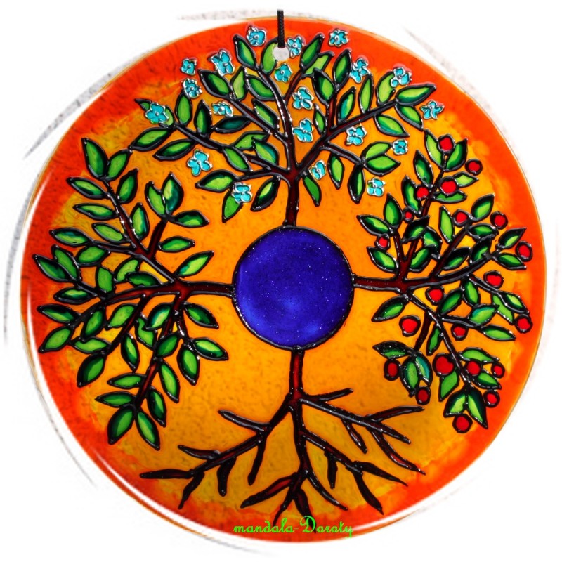 Czwórka sugeruje równowagę, całkowitość i zakończenie. Mówi o potrzebie harmonii i porządku. Koło to symbol życia, śmierci i odrodzenia. Wszystko co czyni Moc Świata, dokonuje się w okręgu. (Neihardt). W mojej mandali drzewo również ukazuje cykl życia, odradzanie się (liście), rozkwit (kwiaty), dojrzewanie (owoce) i usypianie (bezlistne gałęzie). Energia życia krąży nieustannie w swoim rytmie. Każda część tego procesu jest tak samo ważna i uznana. Każda jest potrzebna i ma swoje znaczenia dla całości. Mandala jest odzwierciedleniem jaźni.