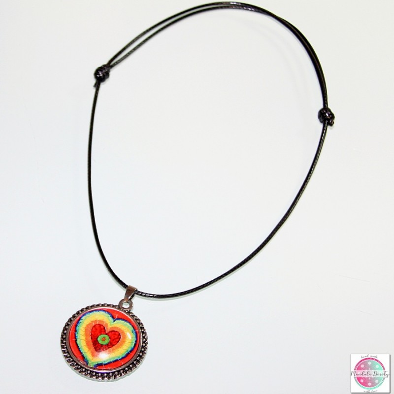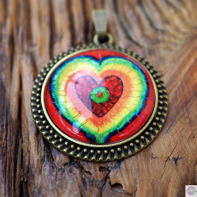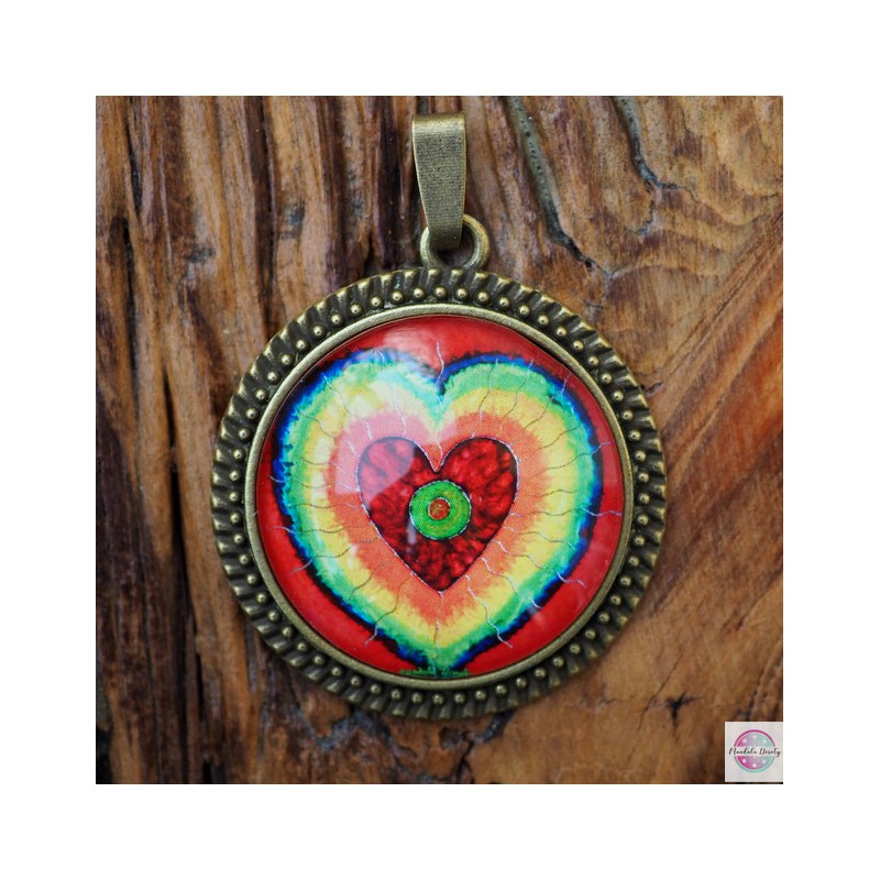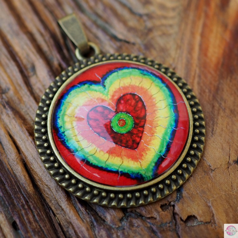 Medalion z mandalą "Przestrzeń Serca". Mandala ta promieniuje energią Stworzenia. Tą energią jest Miłość. Serce jako centrum każdego istnienia może obdarzać miłością lub być zamknięte na jej przepływ. Mandala ta ma za zadanie otworzyć serce na swobodny, nieograniczony przepływ energii miłości, który dotknie najpierw Ciebie, a potem wszystko wkoło.
