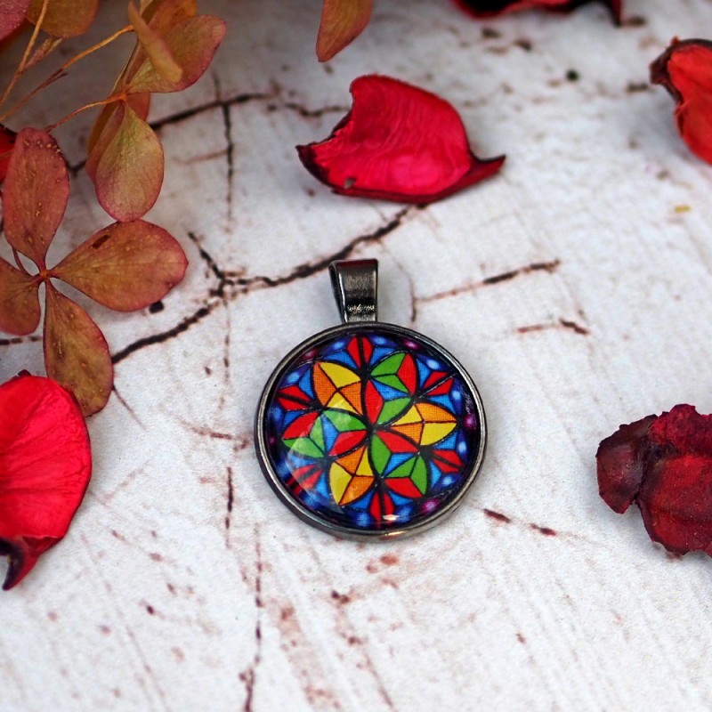 Zawieszka z mandalą ochronną "Kryształowa Tarcza" w oprawie w ciemnego srebra.