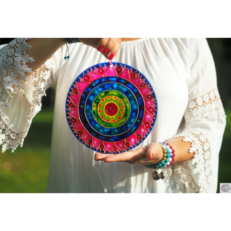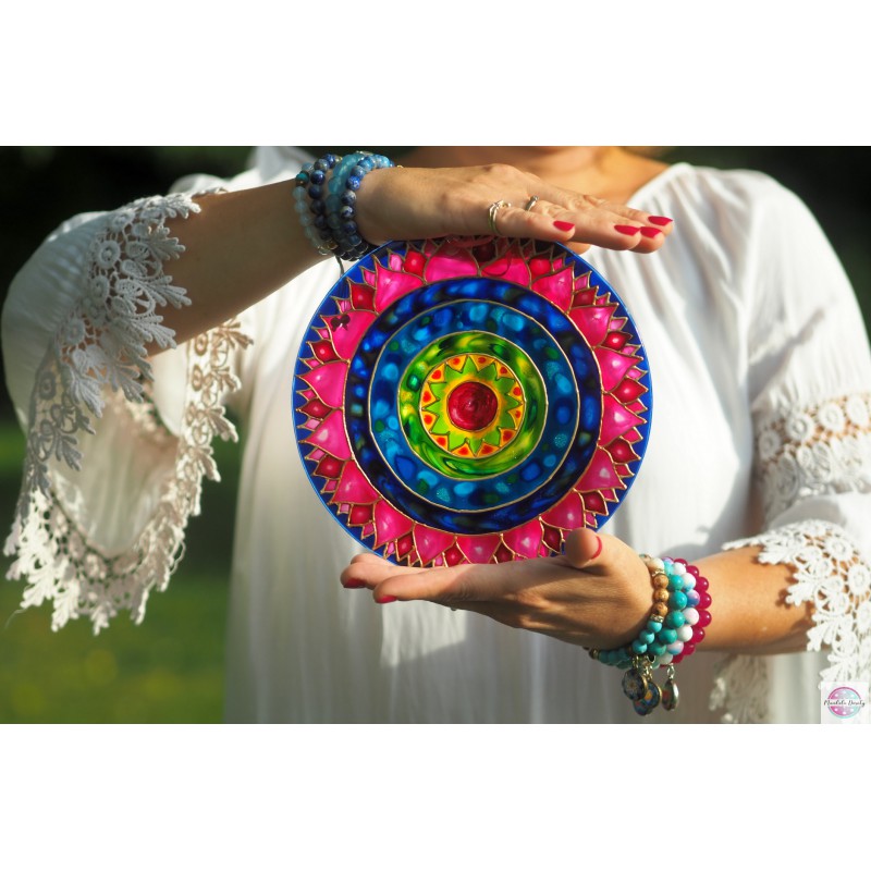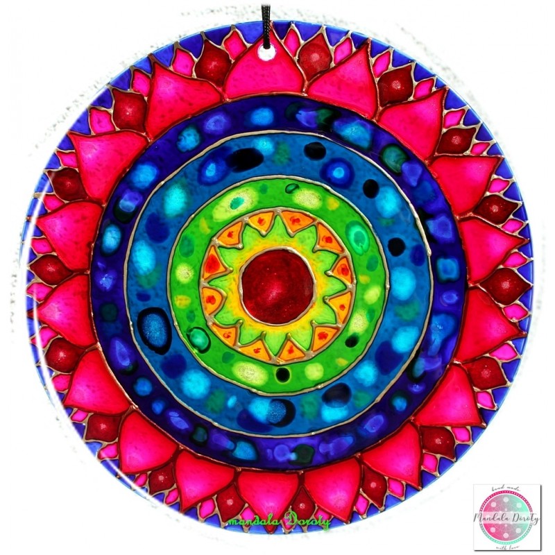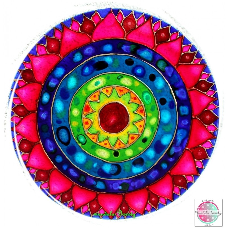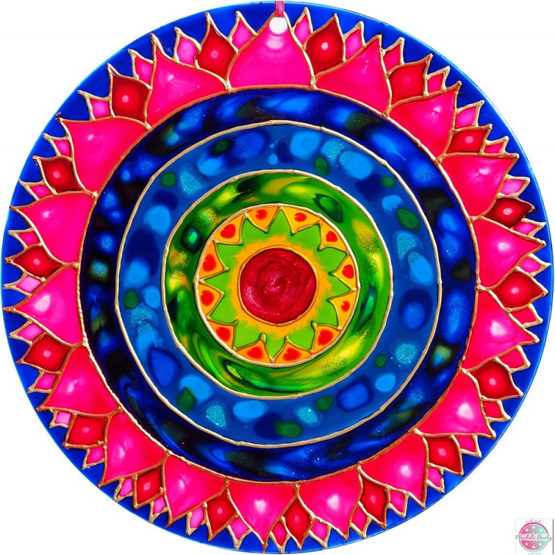 Mandala namalowana na szkle o średnicy 20 cm. Do mandali dodaję przyssawkę do zawieszenia na oknie. Copywright©
