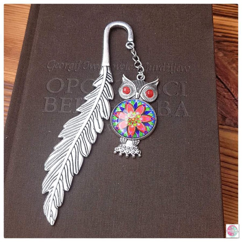 Zakładka do książki z mandalą "Zachwyt" i z dużą sową.