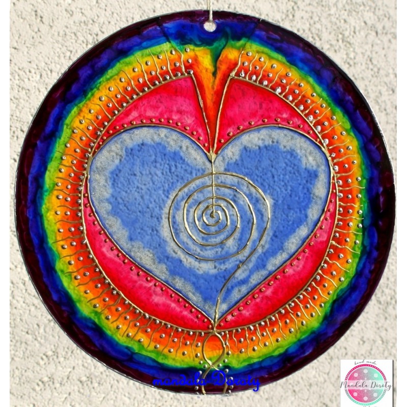 Mandala na szkle „Kocham Siebie” zasila serce energią matczynej miłości, którą teraz możesz sama/sam sobie ofiarować. Wspiera Cię w codziennym akceptowaniu siebie i docenieniu własnego istnienia.