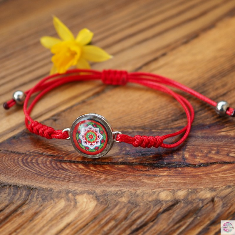 Wykonana ręcznie ze sznurka jubilerskiego w kolorze czerwonym.
