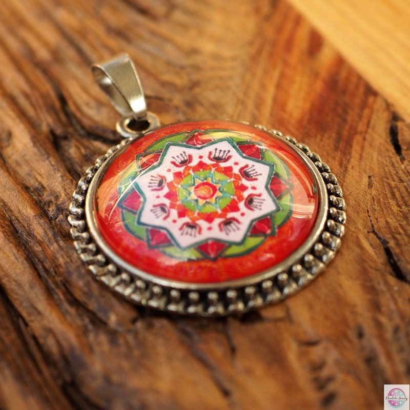 Wielkość motywu mandali 30 mm. Wielkość całego medalionu ok. 37 mm.
