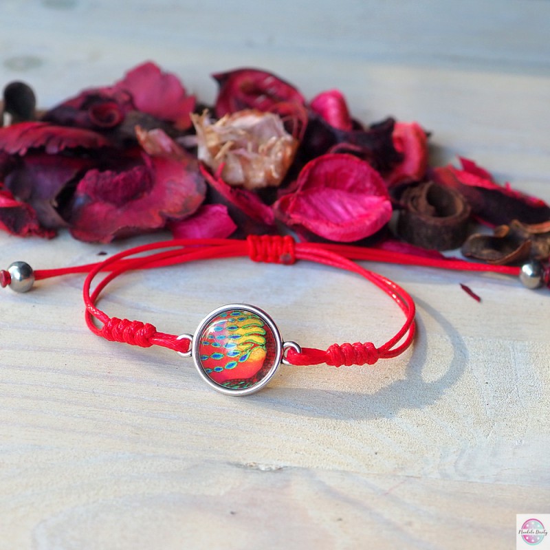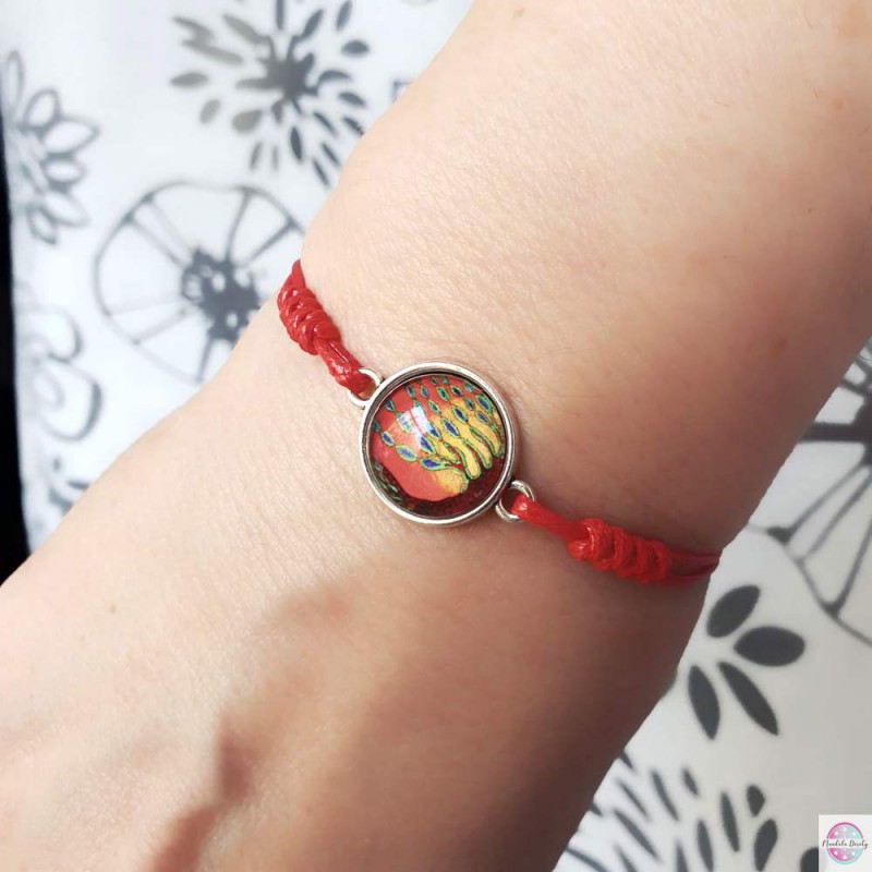 Wykonana ręcznie ze sznurka jubilerskiego w kolorze czerwonym. Wielkość regulowana.