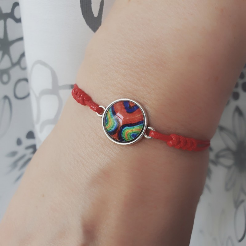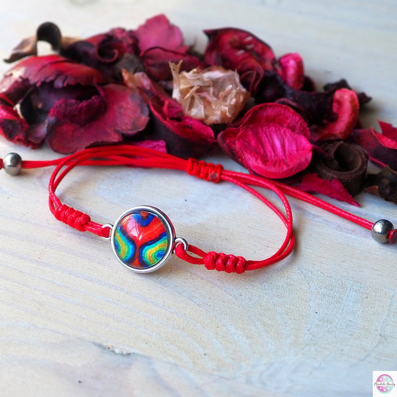 Wykonana ręcznie ze sznurka jubilerskiego w kolorze czerwonym. Wielkość regulowana.