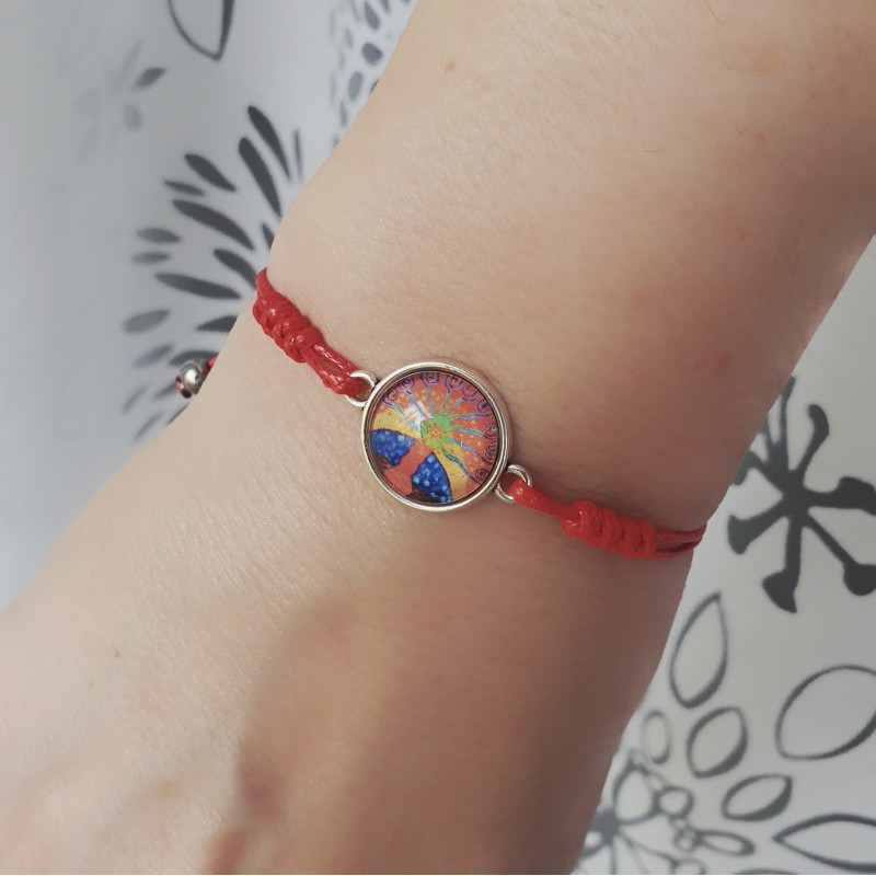 Wykonana ręcznie ze sznurka jubilerskiego w kolorze czerwonym. Wielkość regulowana.