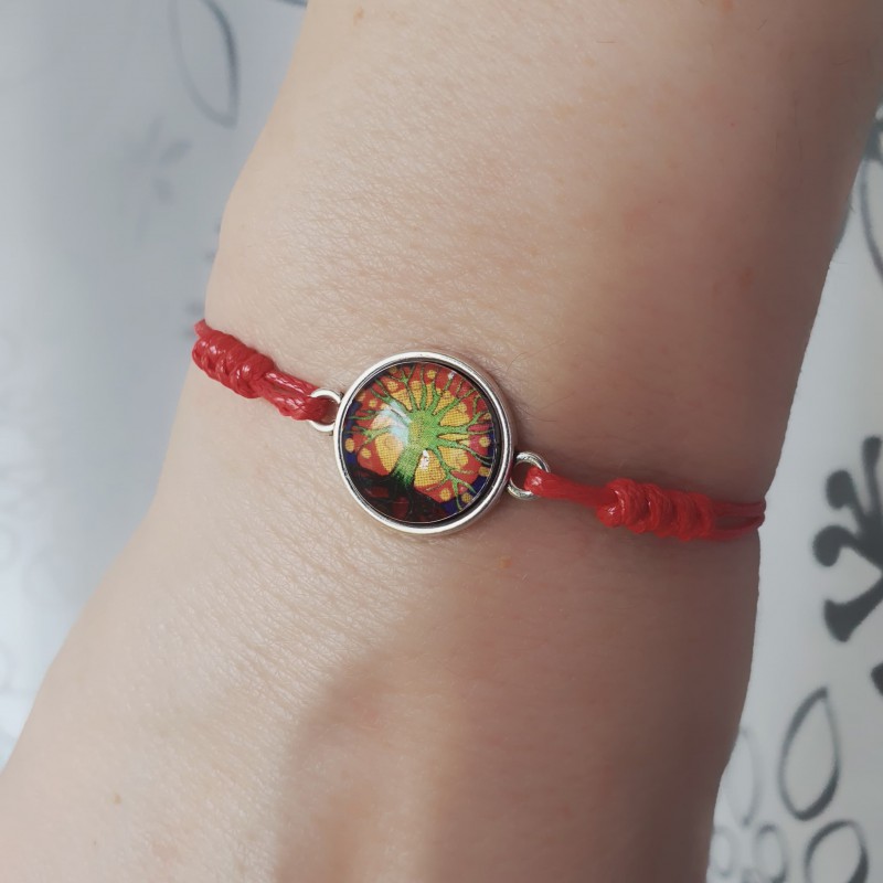 Wykonana ręcznie ze sznurka jubilerskiego w kolorze czerwonym. Wielkość regulowana.