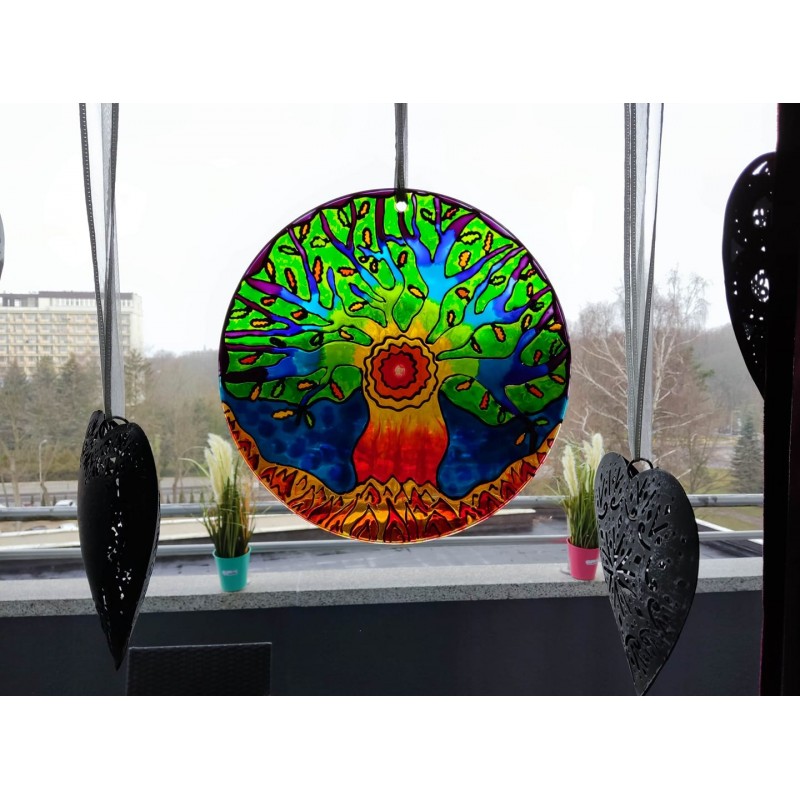 Mandala na szkle "Tęczowy Dąb".