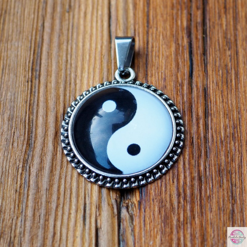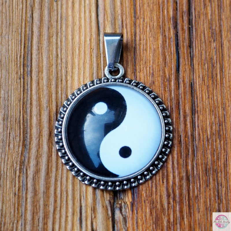 Medalion z mandalą Yin Yang. Koncepcja yin i yang jest symbolicznym przedstawieniem harmonii w dualistycznej rzeczywistości. Pochodzi z antycznej filozofii chińskiej i metafizyki. Opisuje ona dwie pierwotne i przeciwne, lecz uzupełniające się siły, które odnaleźć można w całym wszechświecie. Jedno nie istnieje bez drugiego. Po jednym zaraz następuje drugie.