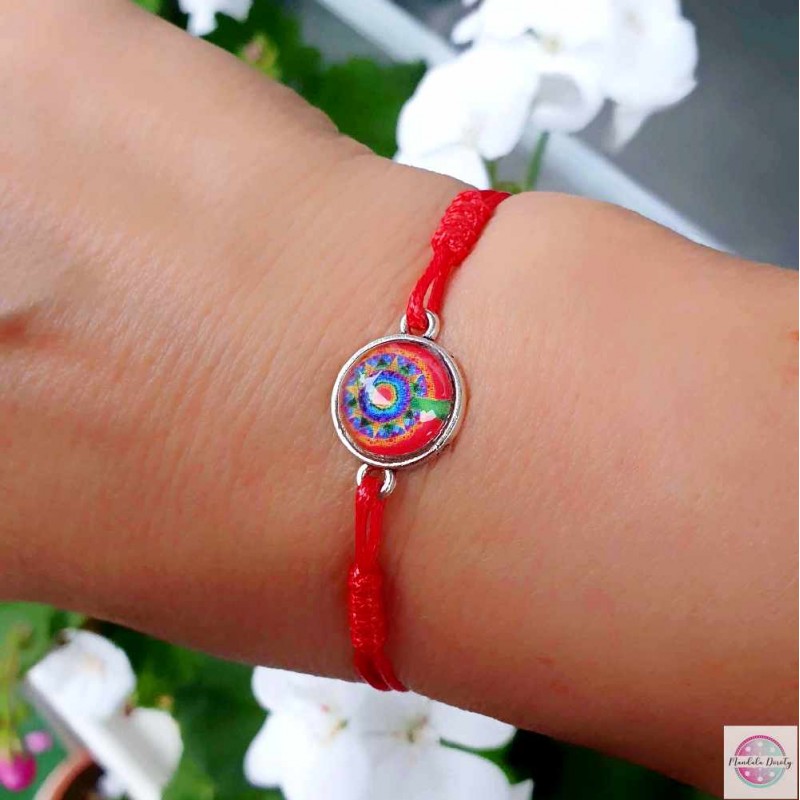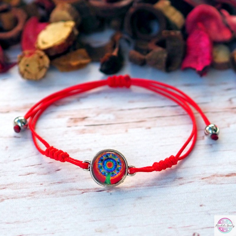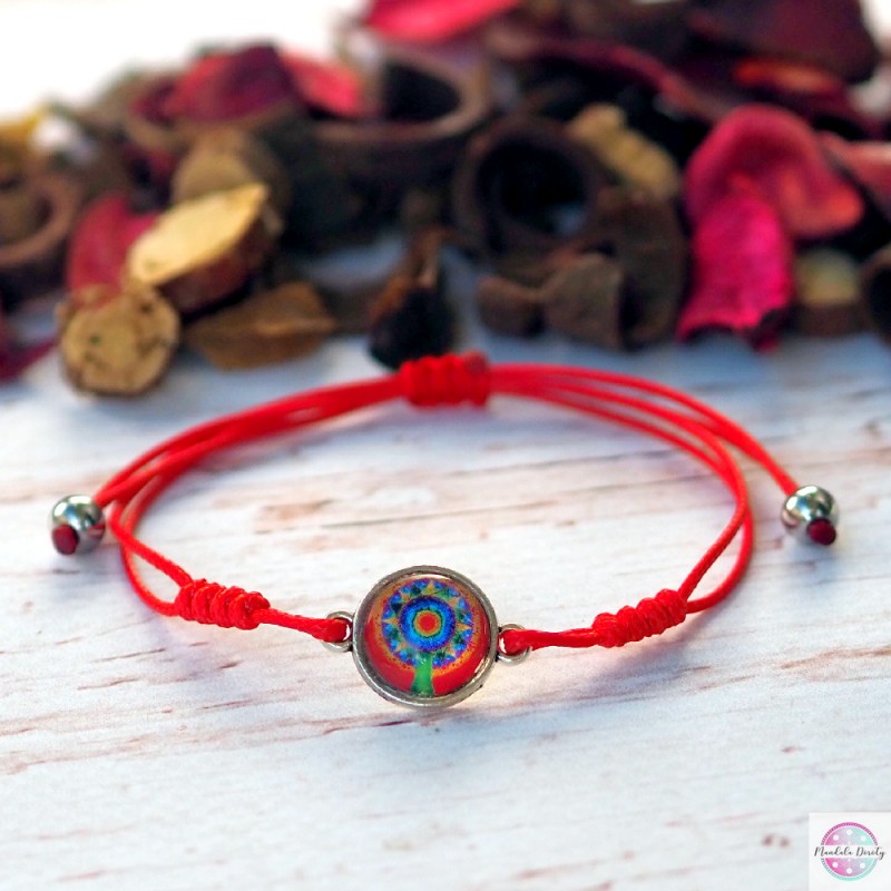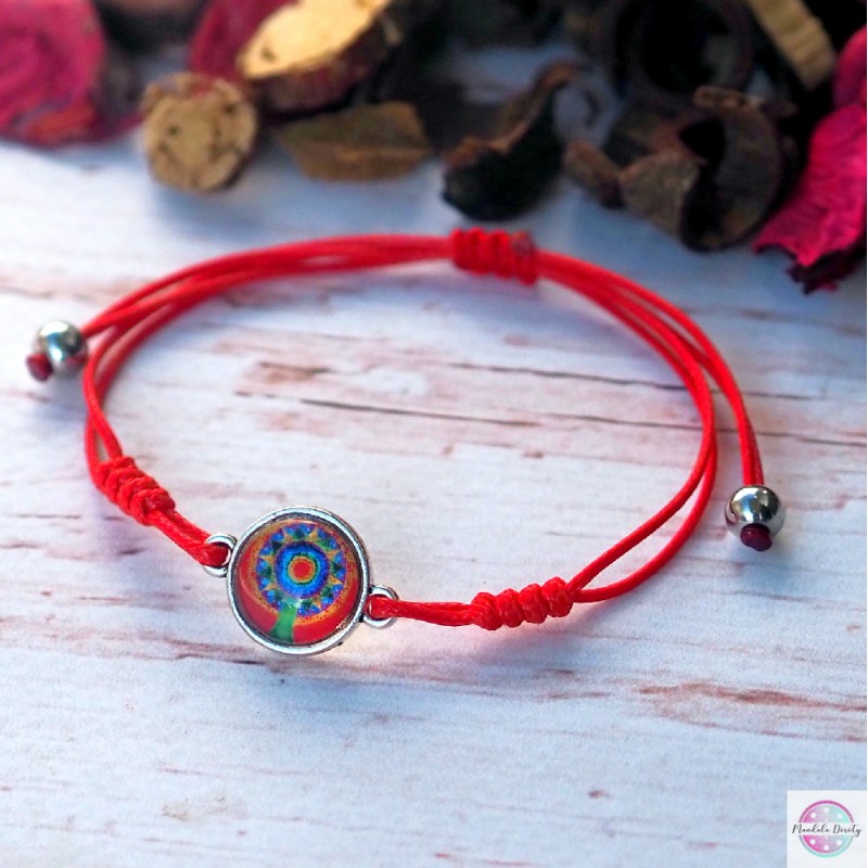 Delikatna i kobieca bransoletka z mandalą "Drzewko Szczęścia". Mandala na szkle "Drzewko Szczęścia" powstała w intencji przyciągnięcia do swojego życia najwyższych energii szczęścia, miłości, spokoju, radości i zdrowia. Drzewko jest symbolem występującym w wielu kulturach, jest więc uniwersalnym znakiem obfitości i ogólnego dobrostanu, oświecenia czy też łączności ze światem duchowym.